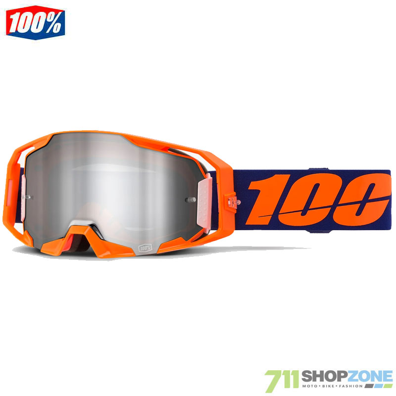 100% Armatic Neon orange mx okuliare mirror silver flash lens