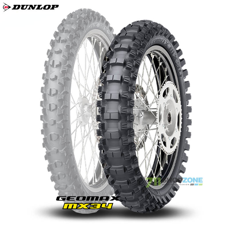 Dunlop Geomax MX34 -výrazne zlepšená akcelerácia vďaka zvýšenej priľnavosti zadnej časti. Vďaka vylepšenej kombinácii zmesi a dezénu dokáže MX34 zabezpečiť čitateľnú odozvu a priľnavosť za sucha aj mokra. Vylepšený výkon v zákrutách a ovládanie driftu vpredu a vzadu. Vylepšený pocit a spätná väzba vďaka kontrolovanému ohybu plášťa. Konzistentnejší výkon počas celej životnosti pneumatík. Či ste hobby jazdec alebo profesionál, pneumatika Dunlop Geomax vás nesklame v žiadnom smere. Je odolná, trvácna, výborne odvádza nečistoty. Samozrejmosťou je skvelá trakcia.