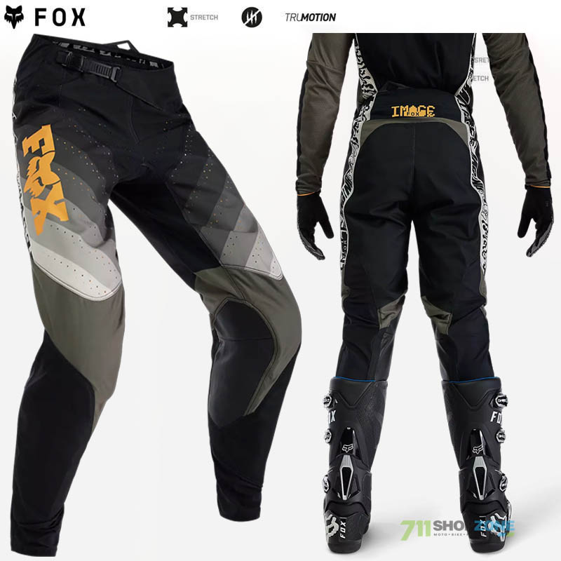 Najvyššia rada mx, enduro, atv nohavíc FOX z modelovej rady 360 Fade. Najobľúbenejší model vďaka prepracovanému strihu, ktorý dokonale sedí na každý typ postavy, pohodliu a možnosti neobmedzného pohybu, ktoré zabezpečujú panely s elastickým materiálom vložené na kolenách a sedovej časti, materiál - extrémne odolný 100% polyester. Základom je štvorstranne elastická, odolná tkanina s úpravou TruMotion® pre rovnováhu medzi pohyblivosťou a odolnosťou. Kolenné časti sú spevnené voči oderu panelmi z hovädzej kože. Zároveň sú kolenné časti tvarované tak, aby boli kompatibilné s kolennými chráničmi, či orézami. Pre udržanie ideálnej teploty tela sú strategicky umiestnené odvetrávacie otvory. Najviac namáhané časti a sedacia časť je spevnená panelom z odolného materiálu 600D v kombinácii z Cordura® Ripstop materiálomčo zabezpečí dlhú životnosť nohavíc.