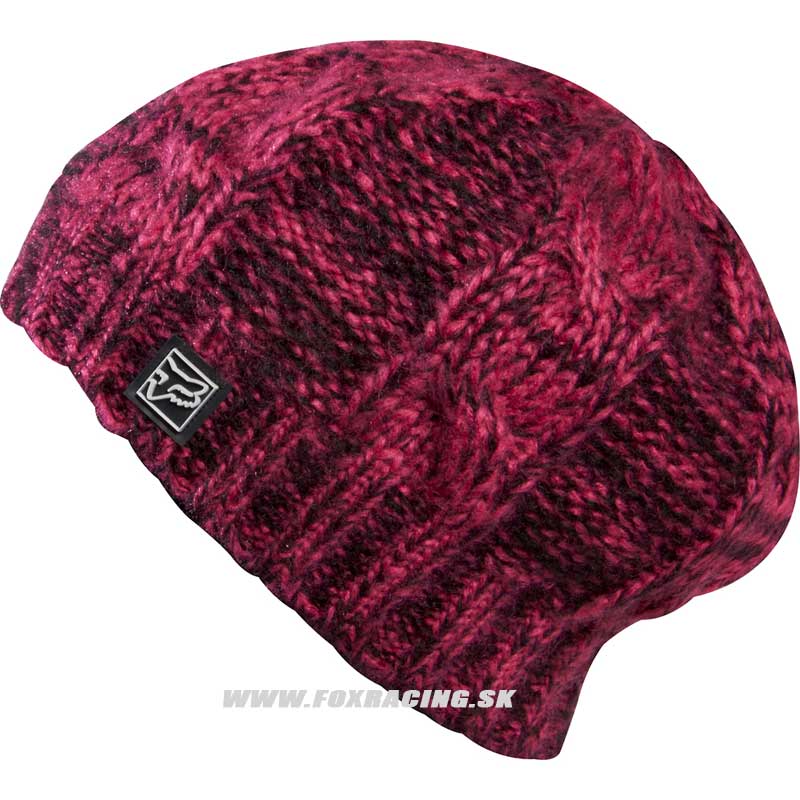 dámska pletená štýlová baretka, našité gumové logo FOX, 100% akrylik