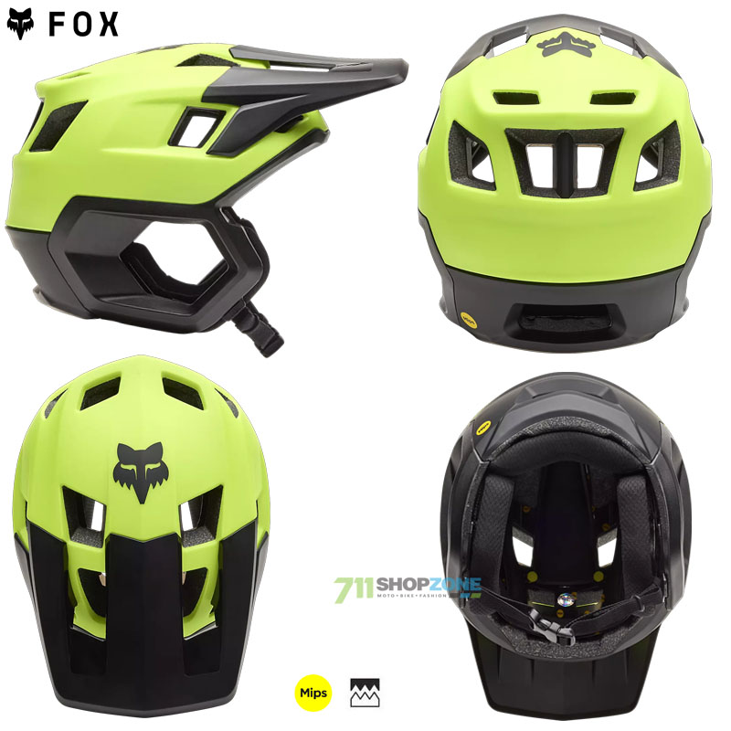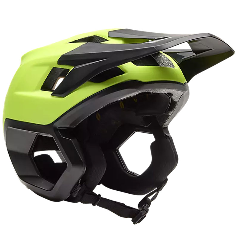 Fox Dropframe spája v sebe unikátnu a kompletnú ochranu tylovej časti a oblasti uší, pri zachovaní otvorenej tvárovej časti. Pevná škrupina z odľahčeného ABS plastu je doplnená o dvojitú EPS penu v profile Varizorb ™ s unikátnou schopnosťou pohlcovať a rozvádzať vibrácie a náraz. Prilba je vybavená ochranným systémom MIPS. Vetranie zabezpečuje 8 veľkých vstupných a 7 výstupných otvorov. Obľúbené zapínanie sa ľahko ovláda aj v rukaviciach. Prepočet veľkostí S: 52-54cm, M: 54-56cm, L: 56-58cm, XL: 58-60cm. Váha 485-505g v závislosti od veľkosti.