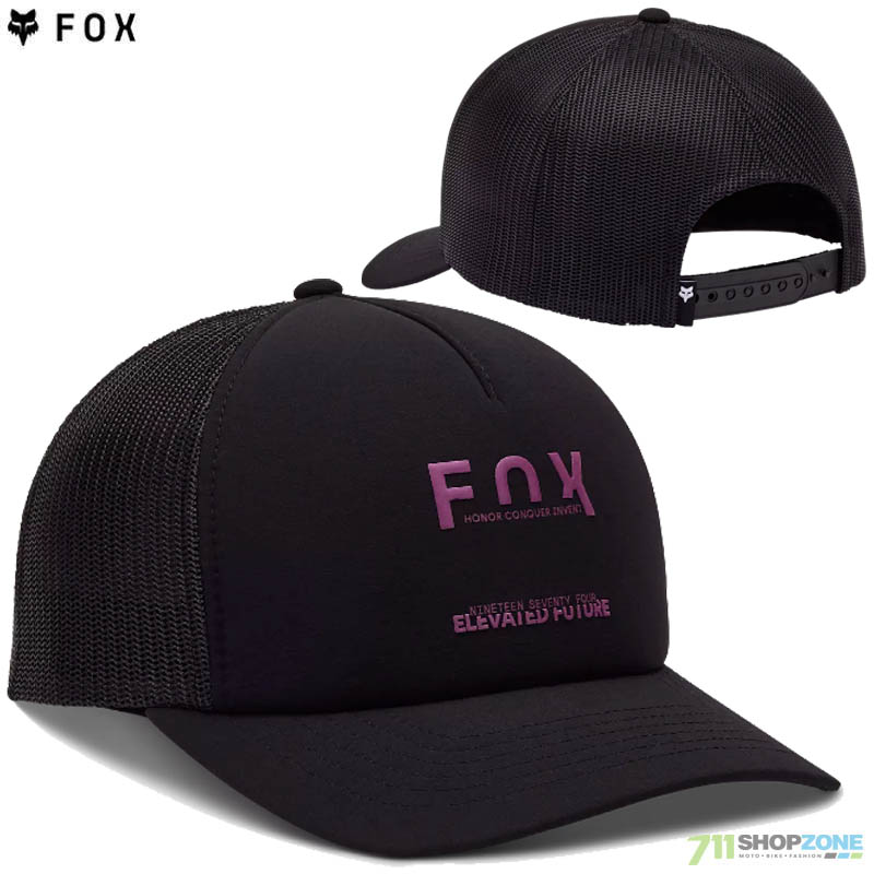 dámska šiltovka v štýle trucker, čo znamená vyšší profil a sieťku na zadnom diely. Zároveň je na zadnom diely nastaviteľný pás. Logo FOX je vyšité. Materiál: 54% polyester, 41% nylon, 5% spandex.