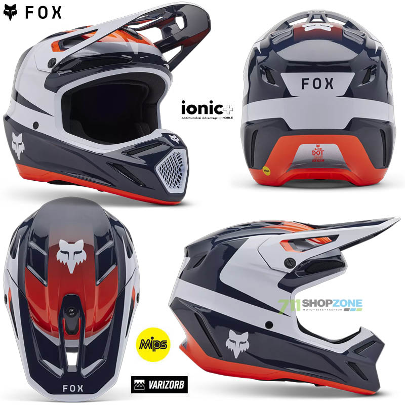 Úplne nový, prepracovaný model MX prilby z najvyššej rady V3, v sebe spája technologicky najvyspelejšie funkcie a komfort s prihliadnutím na najvyššie nároky profesionálnych jazdcov. Škrupinu tvorí kompozitná technológia zo sklených vlákien, čo zabezpečuje nízku hmotnosť, ale zároveň vynikajúcu odolnosť. Prilba má integrovanú ochranu proti nárazu MIPS® a aktualizovaný 3-polohový odlamovací šilt. Výplň MDEPS™ EPS s dvojitou hustotou poskytuje ďalší druh ochrany rozložením nárazových síl na väčšiu plochu. Odnímateľné, umývateľné vnútorné výstelky Ionic+® s lícnymi vypchávkami upravenými na núdzové uvoľnenie, sú antibakteriálne, výborne odvádzajú teplo a vlhkosť. Vnútorné otvory na reproduktory sú kompatibilné s väčšinou komunikačných systémov prilieb. Systém vedenia hydratácie umožňuje hydratáciu počas jazdy. Titánové zapínanie na D-krúžok. Súčasťou balenia je predĺženie šiltu s klipom, náhradný hardvér k šiltu a hydratačný náustok. Spĺňa normy DOT / ECE 22.06. Veľkosť M je na obvod hlavy 57-58cm. Hmotnosť: 1270 g (veľkosť M)