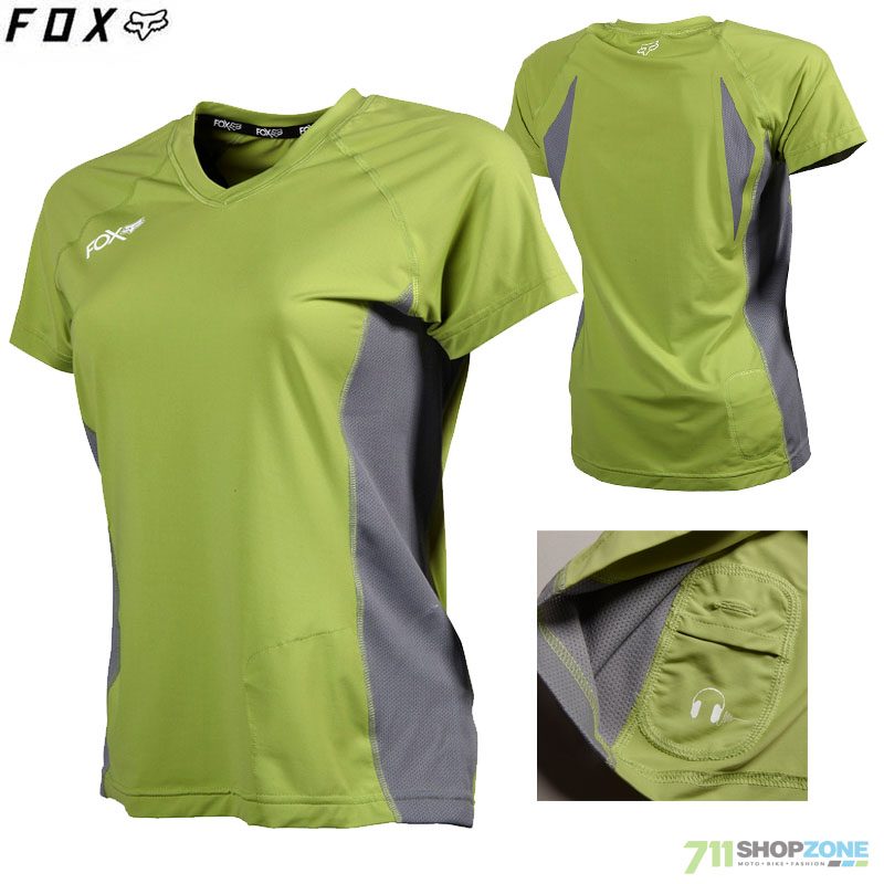 luxusný dámsky cyklo dres s krátkym rukávom z jemného, elastického materiálu, vložené sieťové diely pre lepšie odvetranie, V-výstrih, potlačené logo FOX, handrička na okuliare v dolnom leme, všité audio vrecúško
