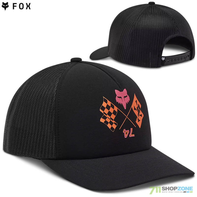 dámska šiltovka so sieťovaným zadným dielom a nastavovaním. Tvar šiltovky je športový, s nižším profilom. Logo Fox s motívom je potlačené.