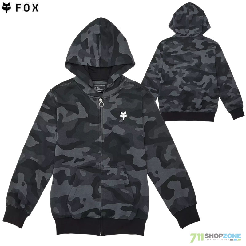Oblečenie - Detské, Fox Yth Head Camo Zip Hoodie detská mikina, čierny maskáč