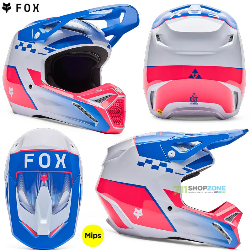 Moto oblečenie - Detské, Fox Yth V1 Collect helmet detská prilba, modro ružová
