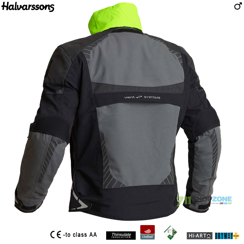 Prémiová celoročná bunda Vansbro je ľahká, s dobrou ventiláciou, zároveň však vybavená 2-vrstvovou laminovanou funkčnou membránou Dryway+ a vode odpudivou povrchovou úpravou Teflon®. Najnamáhanejšie časti na ramenách a lakťoch sú spevnené odolným materiálom HI-ART. V prípade chladného počasia spoľahlivo zahreje odnímateľná, termo regulačná vrstva Outlast Thinsulate®. Chrániče spĺňajú certifikáciu CE AA. Chrániče ramien a lakťov sú nastaviteľné. Bunda má prípravu na vloženie chrbtového chrániča. Bunda má všitý zips na spojenie s nohavicami. Golier je odnímateľný. Samozrejmosťou sú reflexné prvky.