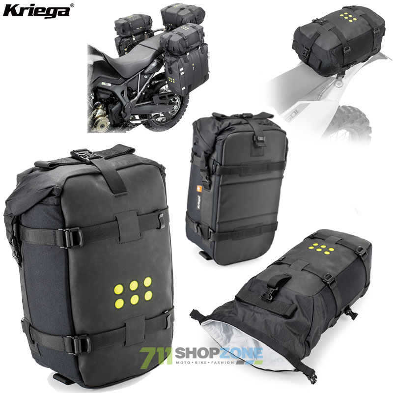 OS-12 Adventure Pack - Kvalitné „adventure“ cestovanie na motorke si vyžaduje kvalitnú adventure batožinu a nový KRIEGA OVERLANDER-SYSTEM (OS) nastavuje nový štandard. Je špeciálne navrhnutý pre jazdu v najnáročnejších prostrediach. Používa sa ako samostatný batoh alebo ako úložný systém s viacerými batohmi pridanými v rade OS. 100% vodotesný roll-top uzáver (odnímateľná biela vložka) zaručuje, že obsah balenia zostane chránený pred poveternostnými vplyvmi. Vyrobené z najkvalitnejších materiálov vrátane ultra odolných proti oderu Hypalon + 1000D Cordura® a háčikov z leteckej zliatiny. Integrované hákové slučky a popruhy umožňujú namontovať batoh priamo na najpopulárnejšie stojany a rámy tašiek. Alternatívne sa dá namontovať rôznymi spôsobmi pomocou háčikov zo zliatiny s inými slučkovými systémami Kriega, vďaka čomu je OS-12 veľmi všestranný balík.