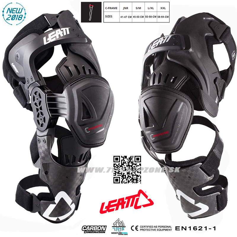 Celokarbónové, nízkoprofilové kolenné ortézy Leatt C-Frame Pro Carbon ponúkajú medicínsky testovanú a certifikovanú maximálnu možnú ochranu kolien pri zachovaní pohodlia a prirodzeného pohybu kolena. Napriek tomu, že žiadna ortéza 100% nezabráni zraneniu kolena, C-Frame ponúka vyššiu úroveň ochrany ako konštrukčne tradične riešené ortézy. Trojbodové rozdelenie výstuže so super tuhým kovaným kĺbovým konštrukčným prvkom C-Frame, ako aj zníženie poranení kolena (ACL, Meniskus a MCL) robia z týchto ortéz dôležitý ochranný prvok. Ortézy sú vybavené laboratórne testovanými vstavanými zlomovými bodmi, ktoré sa pri náraze zlomia skôr, než sa zraní holeň alebo stehenná kosť. Ortézy sú certifikované ako zdravotnícka pomôcka EU CA014741, zároveň sú testované a certifikované ako ochrana proti nárazu EN1621-1.