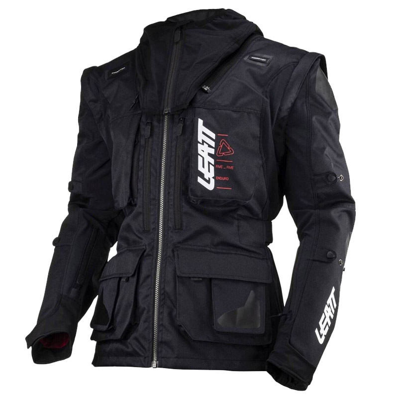 Veľká záťaž a náročné terénne, či poveternostné podmienky, to všetko spoľahlivo zvládne bunda 5.5 Enduro Jacket, i napriek svojej ľahkej konštrukcii. Najnamáhanejšie časti majú zvýšenú ochranu Brush Guard odolnú voči oderu a prerezaniu. Vode odolný materiál zároveň odpudzuje nečistoty. Odnímateľné rukávy sú veľkým bonusom v teplom počasí, kedy jednoducho získate komfortnú vestu. V chrbtovej časti má bunda integrované vrecko na umiestnenie hydratačného vaku v objeme až 3l. Krčná časť je uspôsobená tak, aby bolo možné i nosenie krčného chrániča, ktorý sa dokonca v prípade nepriazne dá prekryť zvrškom. Bunda má celkovo 9 vreciek, z toho 5 vode odolných a 1 na dotykové zariadenia. Samozrejmosťou sú viacradovo prešívané švy, bezpečnostné reflexné prvky, či extrémne kvalitné japonské zipsy YKK.