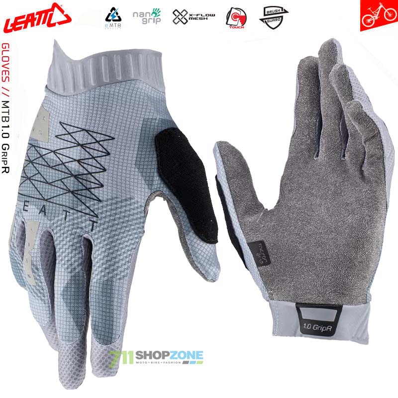 ultraľahké cyklistické rukavice MTB 1.0 GripR perfektne sedia na ruke a zároveň ponúkajú vďaka dlani vyrobenej z MicronGrip materiálu dokonalý cit pri úchope gripu v akýchkoľvek poveternostných podmienkach. Zvršok je z prevetraného, elastického materiálu, ktorý dokonale obopne ruku. Na prstoch je umiestnený silikónový grip, vďaka ktorému je možné ovládanie dotykových zariadení. Na palci je použitý materiál, do ktorého je možné v prípade potreby utrieť okuliare. Manžeta rukavice je bez zapínania, avšak má všitú gumu, vďaka ktorej je obliekanie rukavice jednoduché a pohodlné.