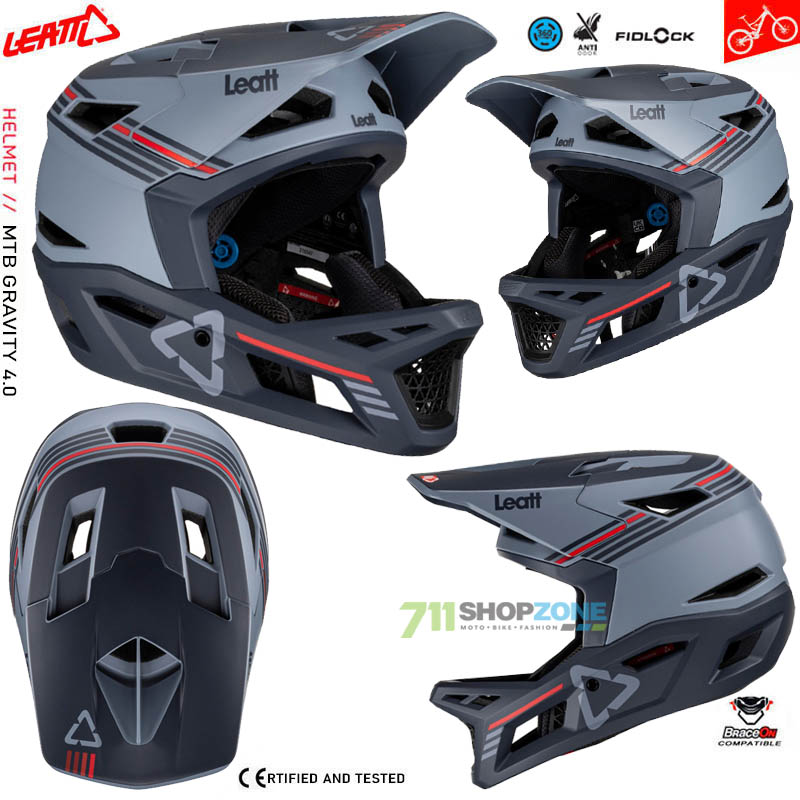 Super prevetraná a ľahká enduro a DH prilba Leatt Gravity 4.0. Polymérová škrupina je doplnená o nárazovú penu EPS + EPO, ktoré vynikajúco absorbujú energiu. Integrovaný bezpečnostný systém 360 ̊ Turbine Technology absorbujú energiu, znižujú o 30% otras mozgu spôsobený nárazom a o 40% eliminujú rotačné zrýchlenie mozgu. Vnútorná výstelka Dri-Lex® odvádza vlhkosť, je priedušná, odolná voči zápachu a je možné ju prať. Vetranie zabezpečuje 22 otvorov. Zapínanie je na jednoduchý magnetický systém Fidlock. Prilba je kompatibilná s krčným chráničom Leatt. Šilt má funkciu odtrhnutia pri páde, čím sú eliminované ďalšie nežiadúce poranenia hlavy a krku. Prilba je certifikovaná AS/NZS 2063:2008, ASTM F1952–10, EN1078, CPSC 1203. Hmotnosť je od 850g. Veľkosti: S 55-56cm, M 57-58cm, L 59-60cm