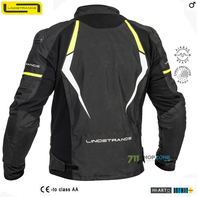 Športová a mierne zúžená nepremokavá textilná bunda v kombinácii s odolnou strečovou tkaninou. Bunda má vodeodolnú membránu DRYWAY+. Strečové panely na chrbte a nad lakťami zaručujú pohodlie a komfort pri pohybe. HI-ART zosilnenie na ramenách a lakťoch. Nastaviteľné certifikované chrániče CE úroveň 2, trieda AA. Na hrudi a chrbte sú vetracie otvory. Možnosť doplnenia chrbtovou ochranou. Strih bundy umožňuje nosenie hrudného chrániča, či Airbagu. Bunda má spojovací zips k nohaviciam.